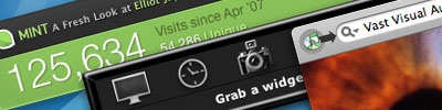 I’ll never stop praising Shaun Inman’s Mint stats app, and his Junior Mint widget allows you to see your major stats at a glance. Simple. Beautiful. Perfect.